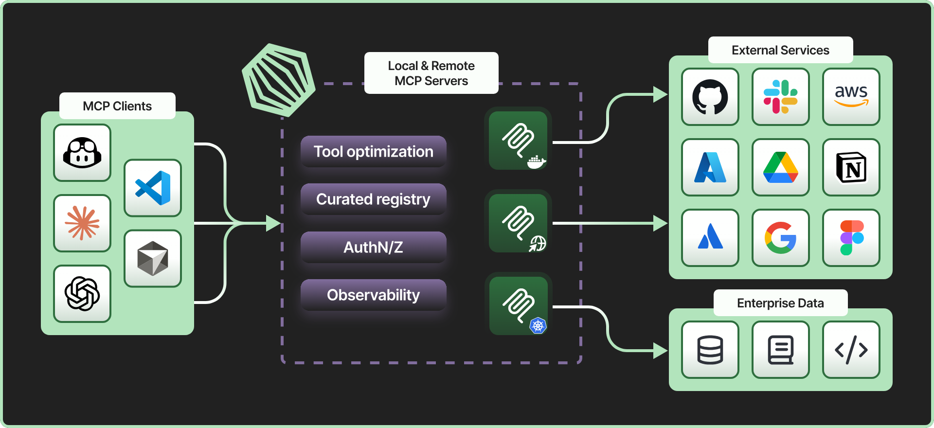 - Operational sprawl: Each MCP server has its own deployment model, configuration style, and lifecycle.